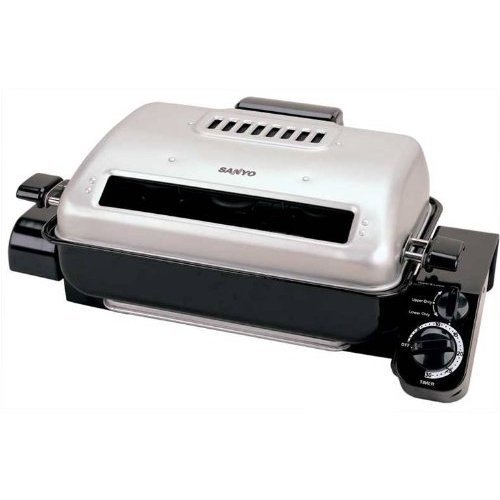 Great for grilling fish, chicken, beef, pork and more. A powerful 1100 watts of power complemented by separate upper and lower heating elements eliminates food turning and insures even cooking. Customize your cooking with three heating options - upper, lower or both element positions can be selected. Ideal for indoor cooking with the built-in ceramic filter that assures virtually odorless and smok